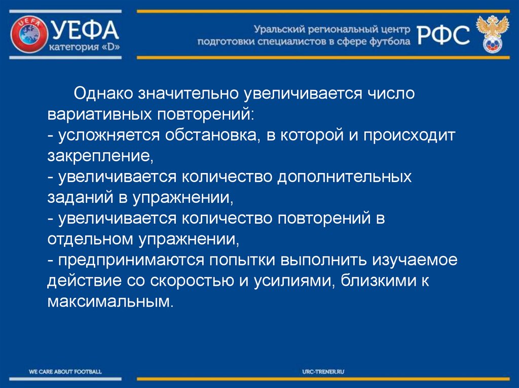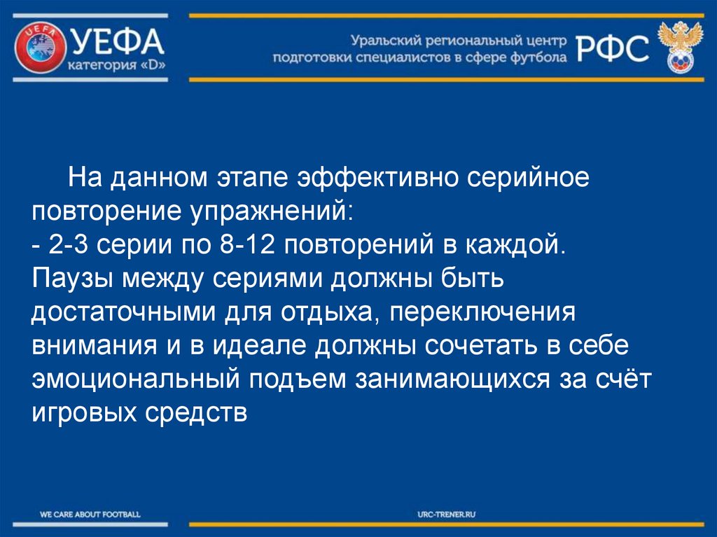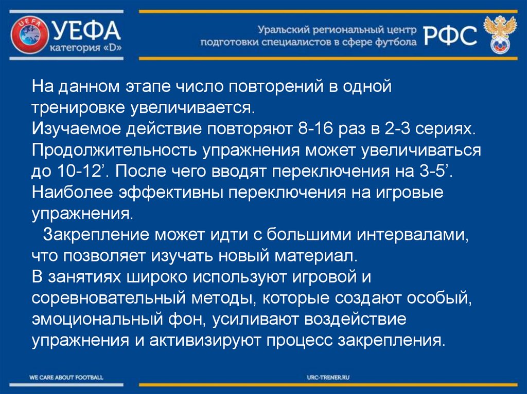 Изучаемое действие повторяют 8-16 раз в 2-3 сериях.