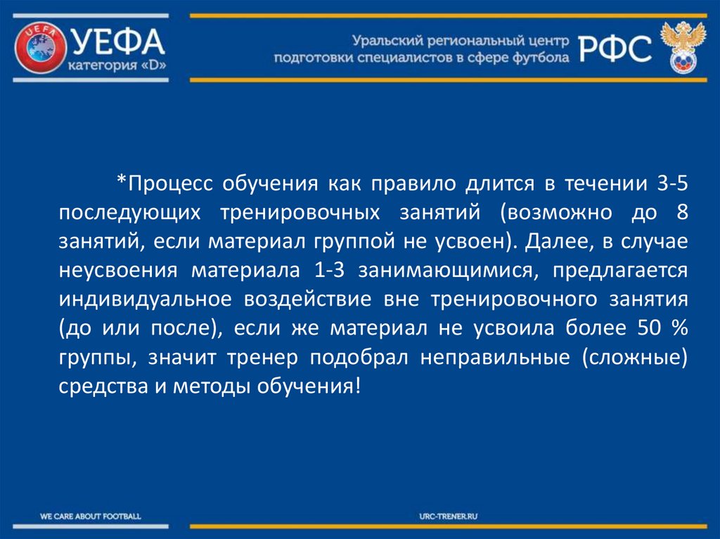 *Процесс обучения как правило длится в течении 3-5последующих тренировочных занятий (возможно до 8
