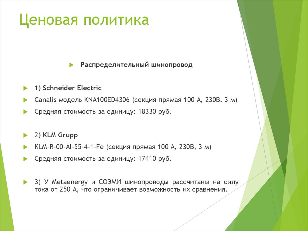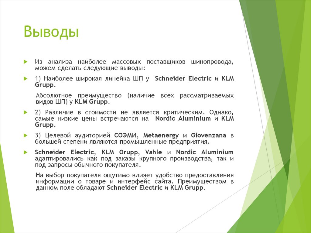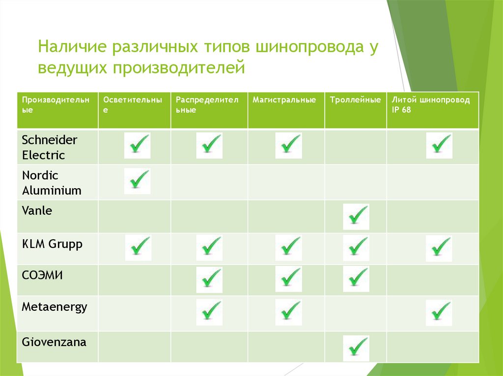 ВыводыИз анализа наиболее массовых поставщиков шинопровода,