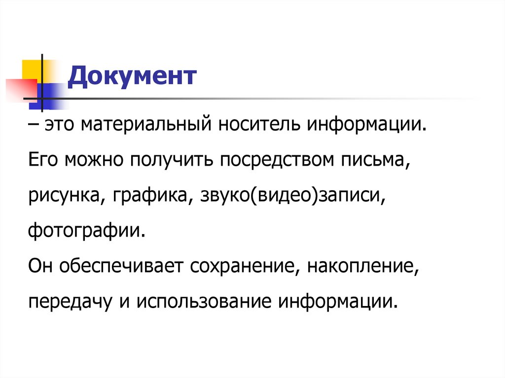 Документ– это материальный носитель информации.