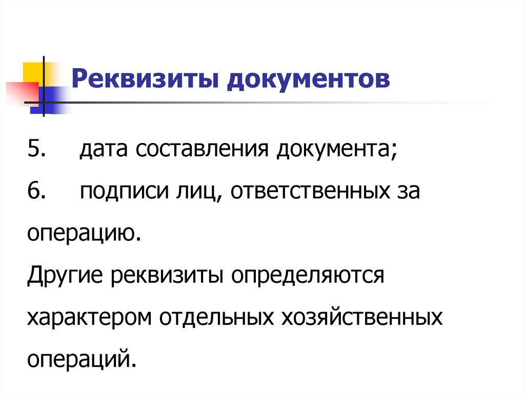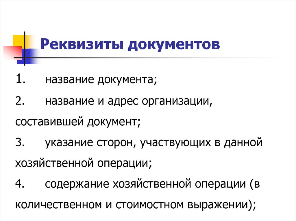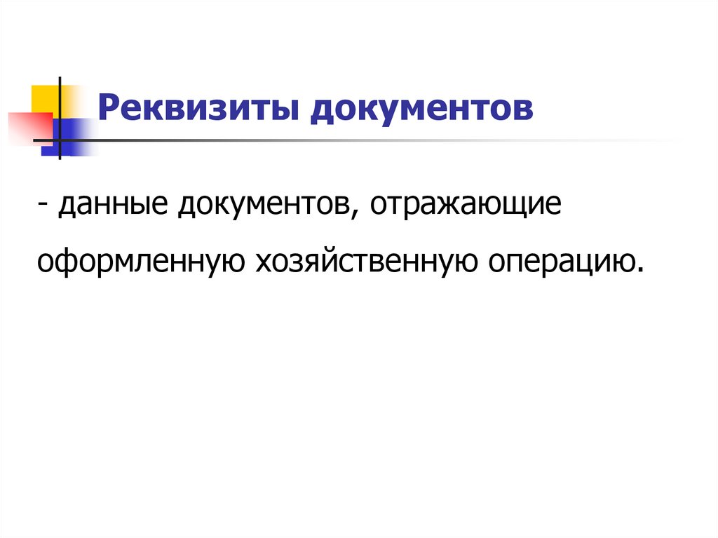 Реквизиты документов- данные документов, отражающие