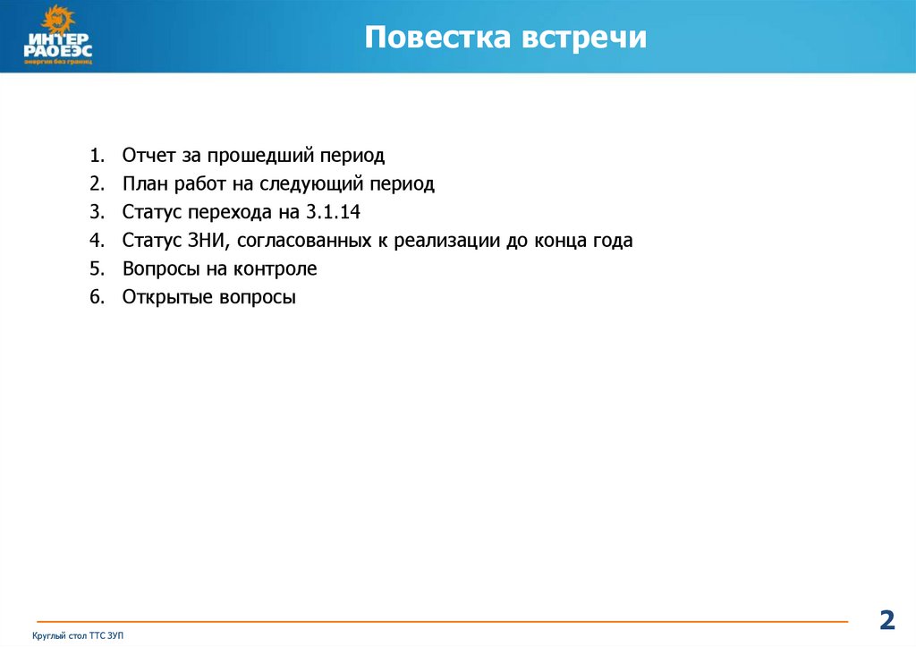 Повестка встречи1.