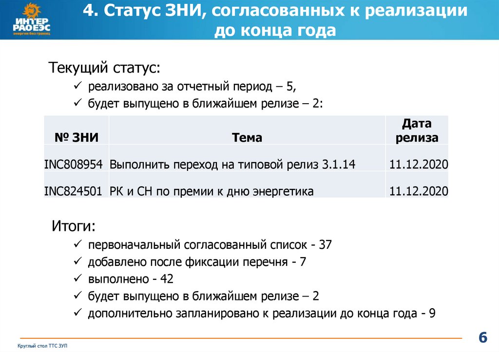 4. Статус ЗНИ, согласованных к реализациидо конца года