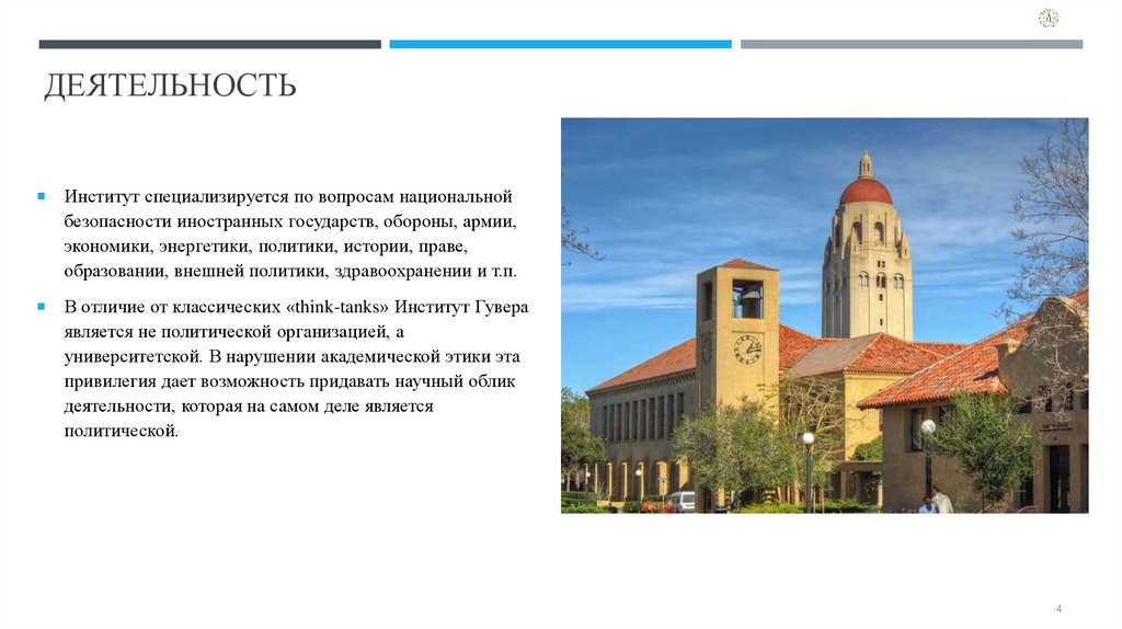 В отличие от классических «think-tanks» Институт Гувера
