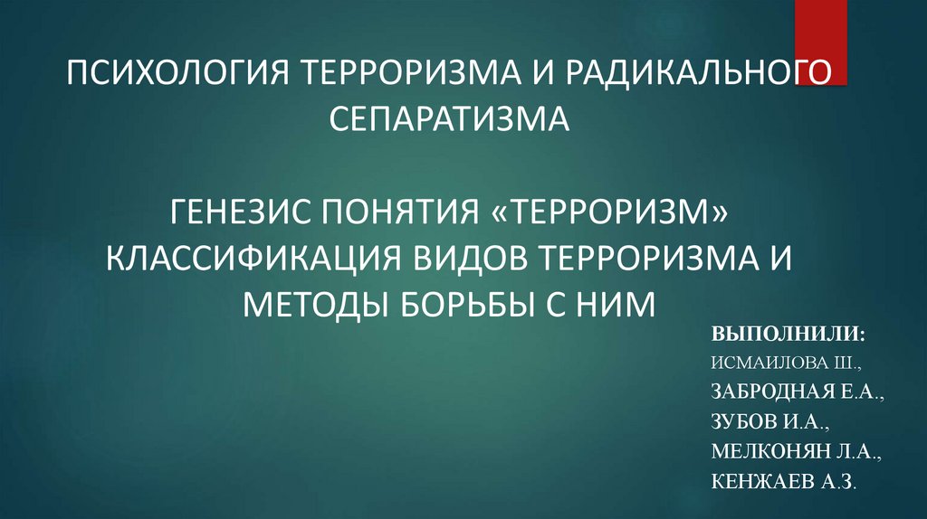 ПСИХОЛОГИЯ ТЕРРОРИЗМА И РАДИКАЛЬНОГОСЕПАРАТИЗМА