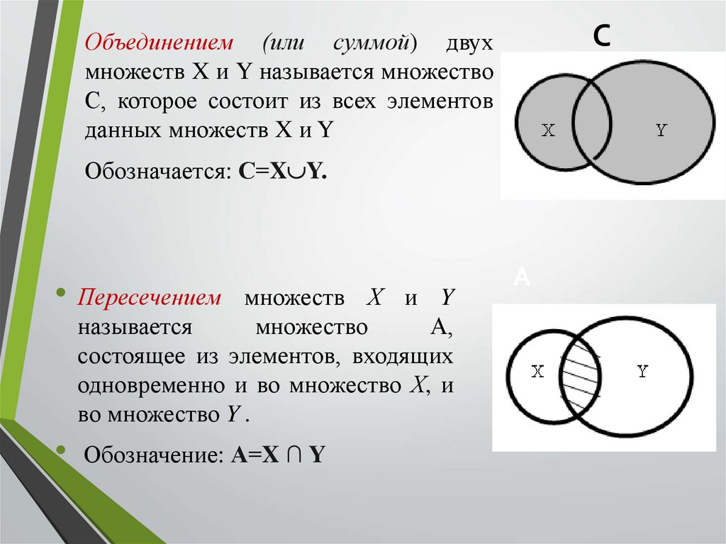Обозначение: А=X ∩ Y
