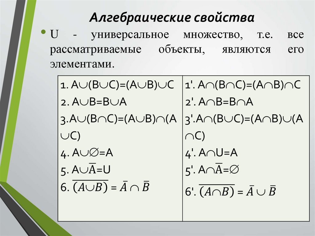 •UАлгебраические свойства