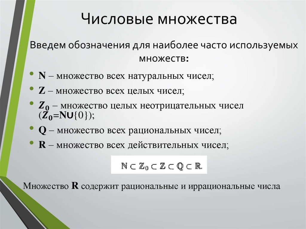 Множества принято обозначатьлатинского алфавита: A, B, C… Z.