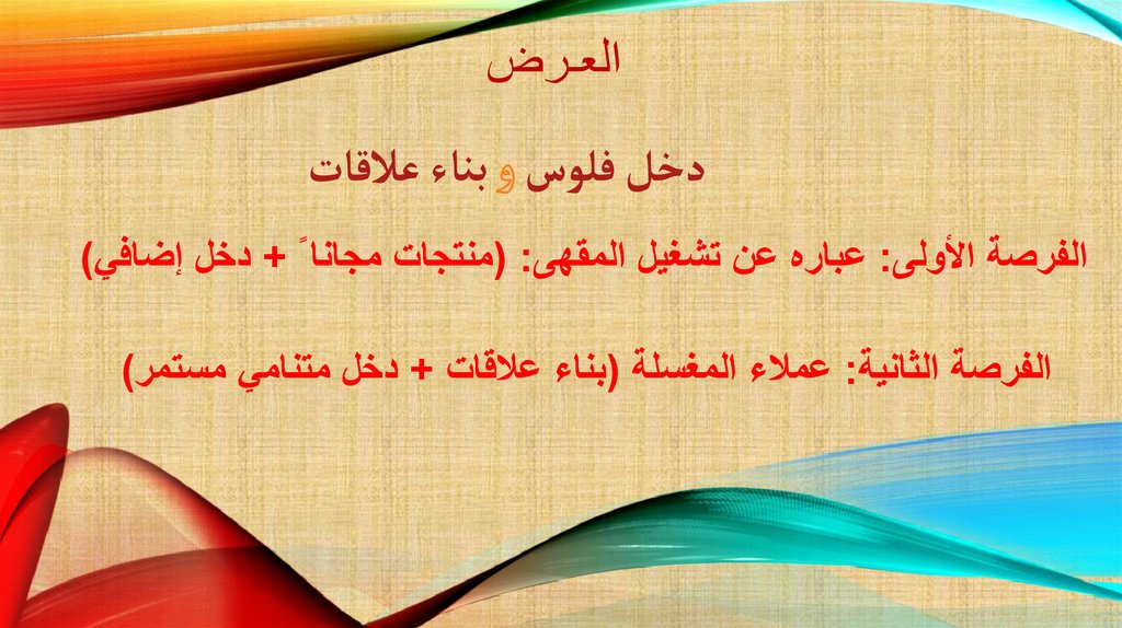 الفرصة األولى :عباره عن تشغيل المقهى( :منتجات مجانا ً +دخل إضافي)