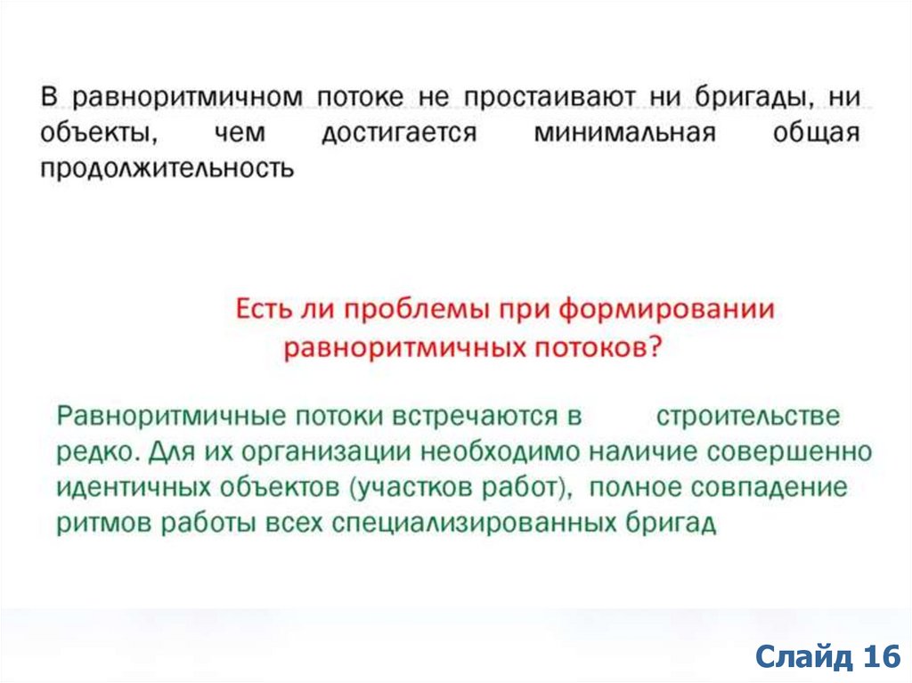 Поточный метод – это такой метод организации работ, которыйобеспечивает планомерный и ритмичный выпуск готовой строительной