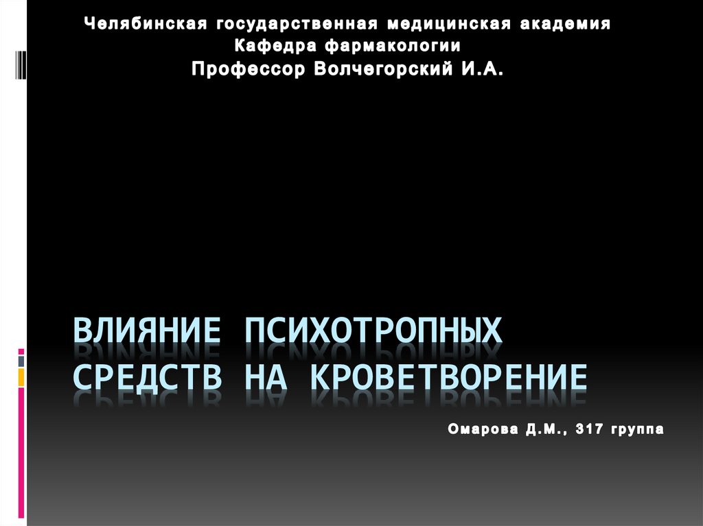ВЛИЯНИЕ ПСИХОТРОПНЫХСРЕДСТВ НА КРОВЕТВОРЕНИЕ