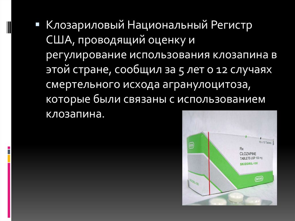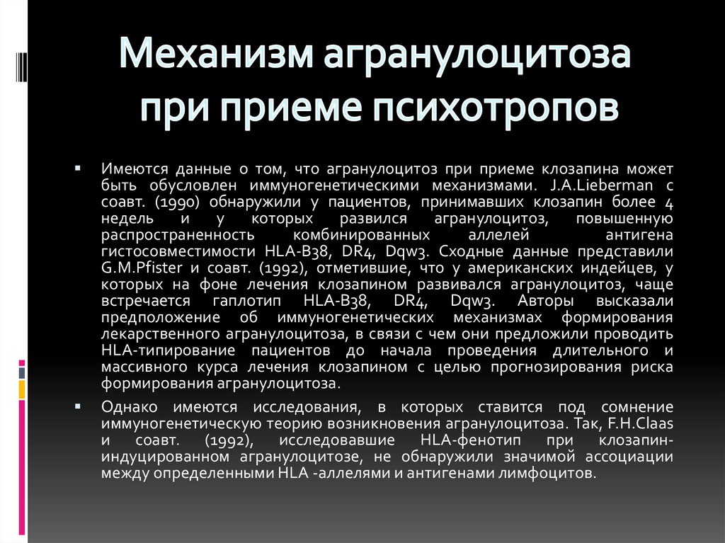 Robinson D.S. Closapine agranulocytosis:mechanism of drug toxity// Primary Psychiatry. -2006. 13(3). – р.27-29