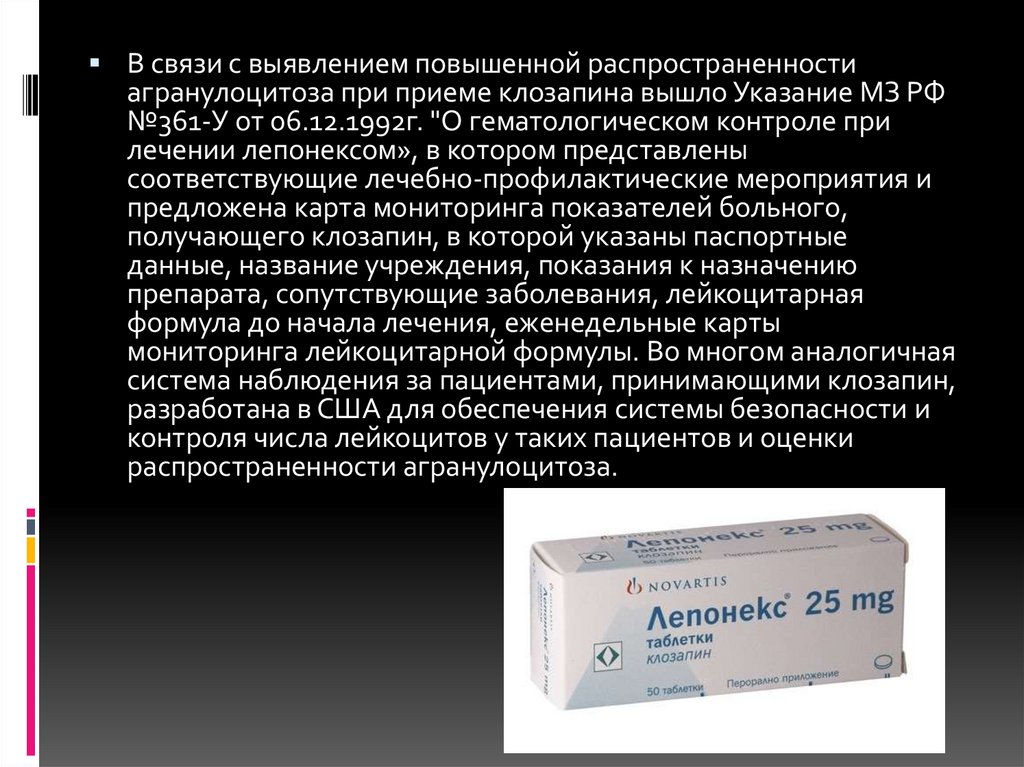 Крупп П., Барнес П. Гранулоцитопения, связанная с приемом лепонекса: обзор ситуации.