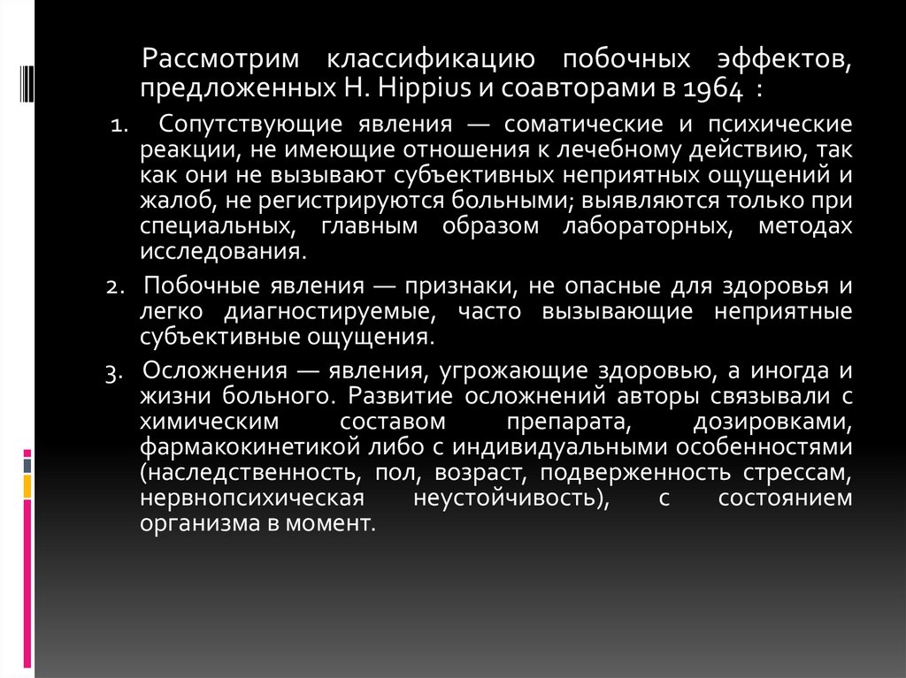 Рассмотрим классификацию побочных эффектов,предложенных Н. Hippius и соавторами в 1964 :