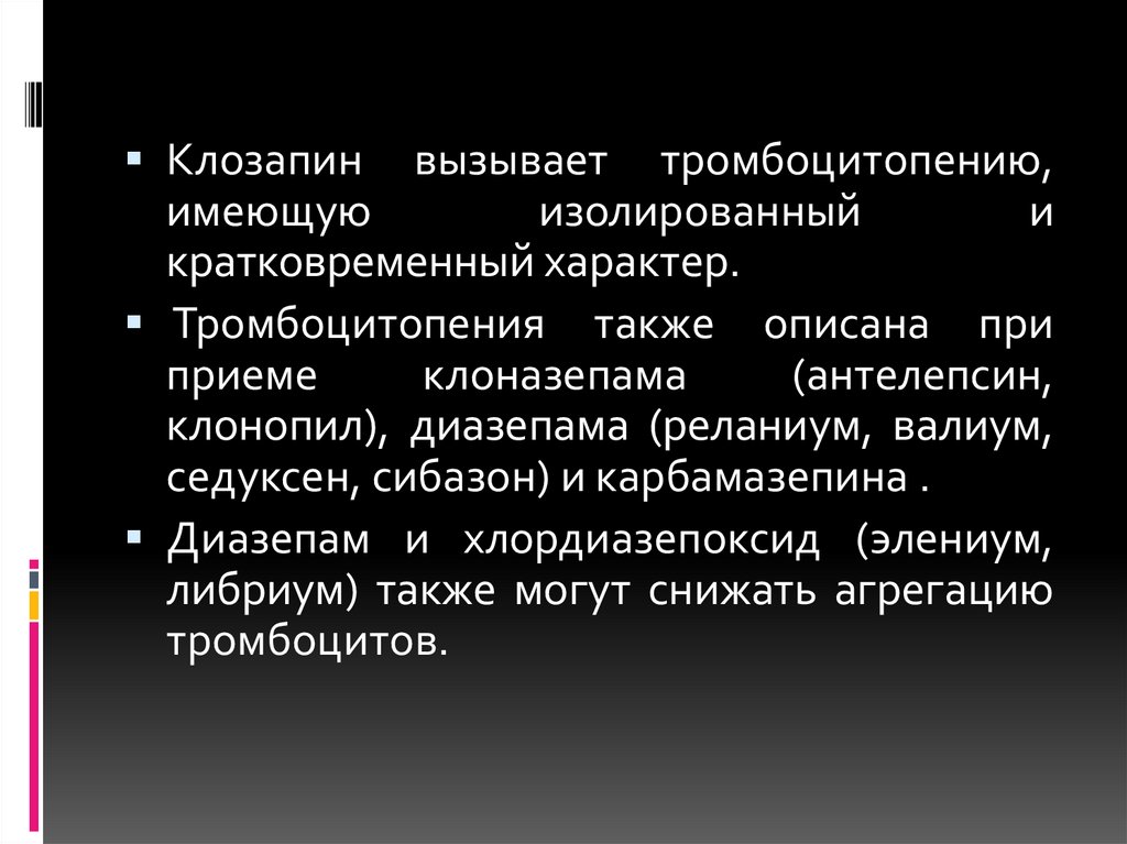 Агранулоцитоз, лейкопения, панцитопения, тромбоцитопения