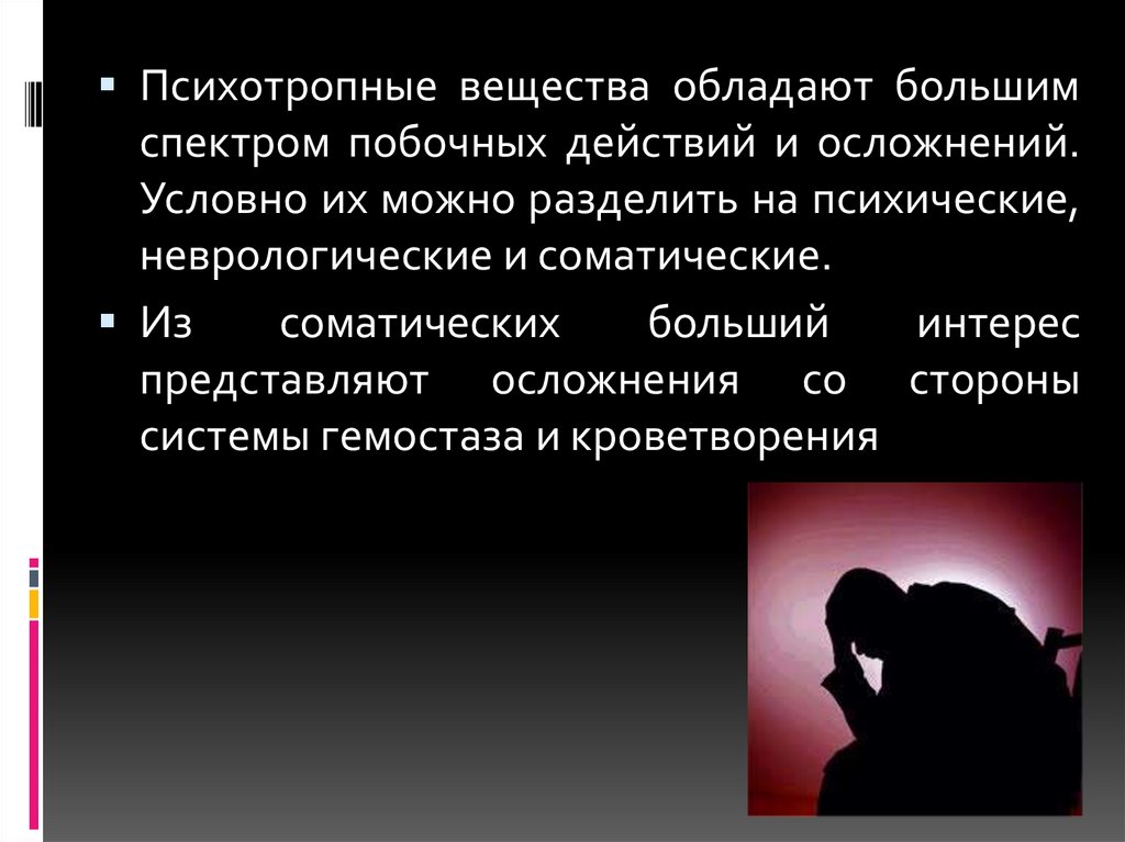 Психотропные вещества обладают большимспектром побочных действий и осложнений.