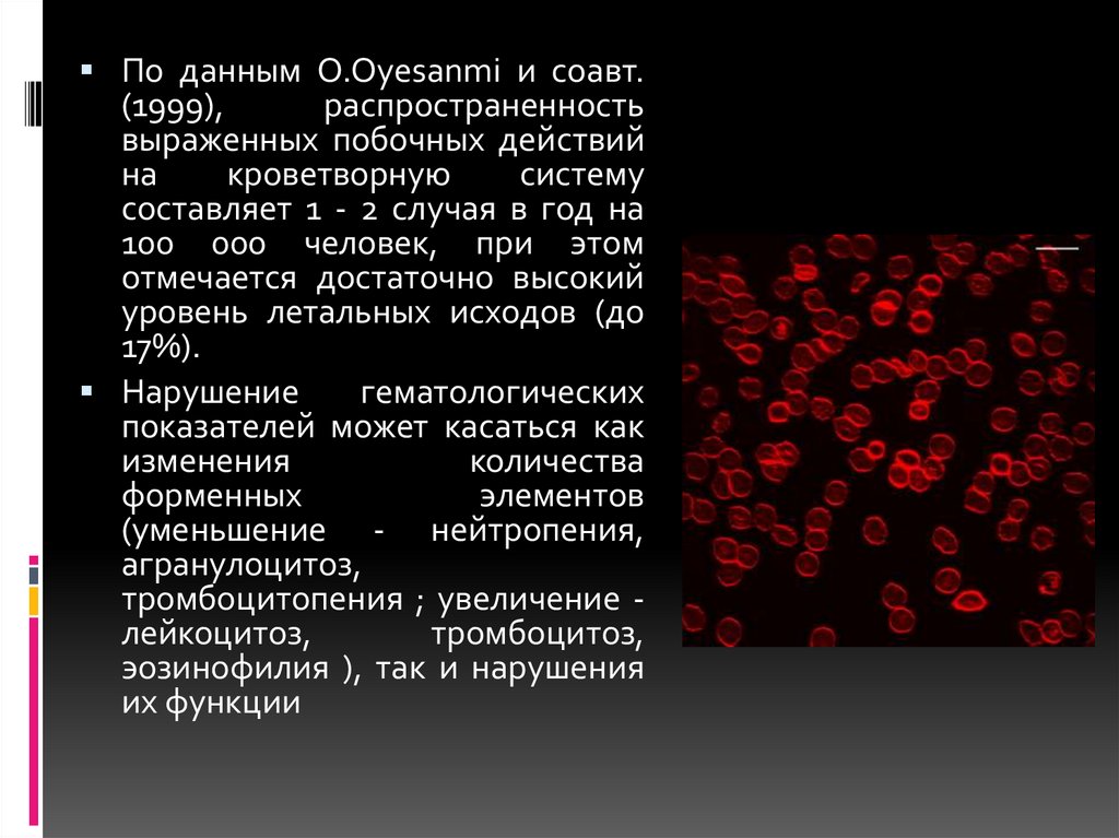 лейкоцитов становится ниже 3000/мм3. Гематологические побочные