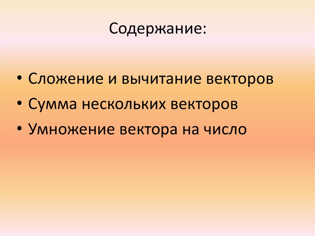 Векторы (понятие вектора, сложение и вычитание векторов, умножение вектора на число)