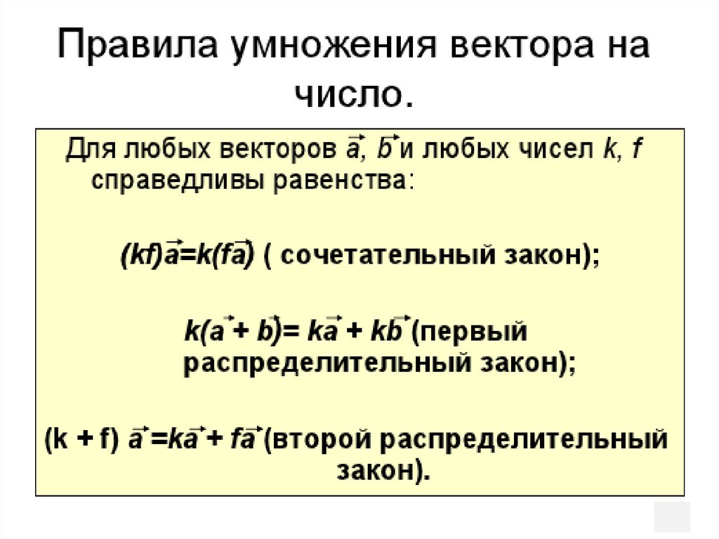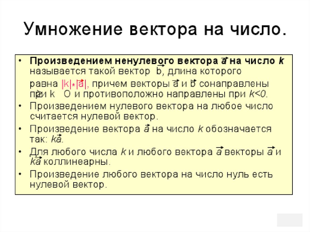Сложение и вычитание векторов в координатах, умножение вектора на число в координатах