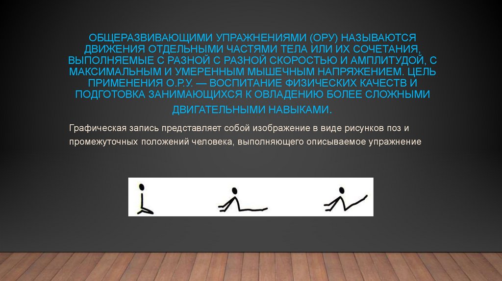 ОБЩЕРАЗВИВАЮЩИМИ УПРАЖНЕНИЯМИ (ОРУ) НАЗЫВАЮТСЯДВИЖЕНИЯ ОТДЕЛЬНЫМИ ЧАСТЯМИ ТЕЛА ИЛИ ИХ СОЧЕТАНИЯ,