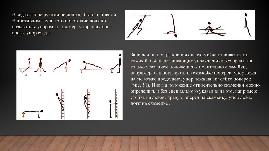 Запись и. п. в упражнениях на скамейке отличается от