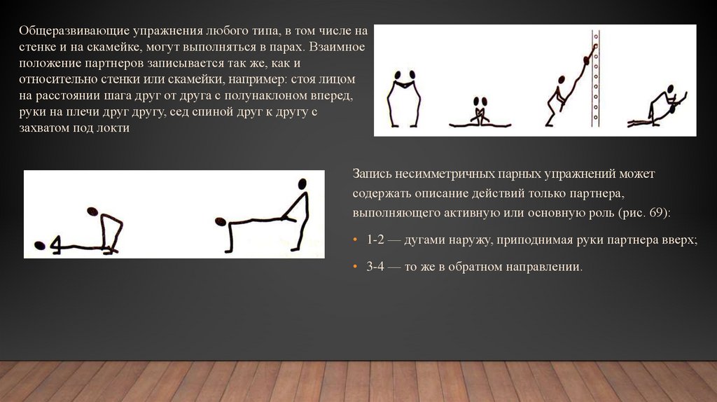Общеразвивающие упражнения любого типа, в том числе настенке и на скамейке, могут выполняться в парах. Взаимное