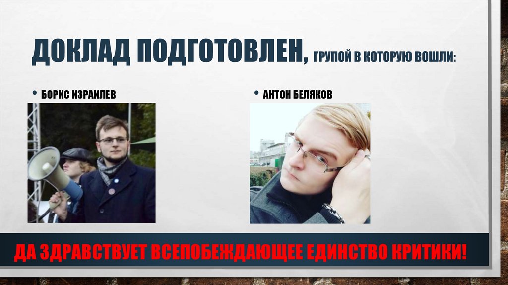 ДОКЛАД ПОДГОТОВЛЕН, ГРУПОЙ В КОТОРУЮ ВОШЛИ:• БОРИС ИЗРАИЛЕВ