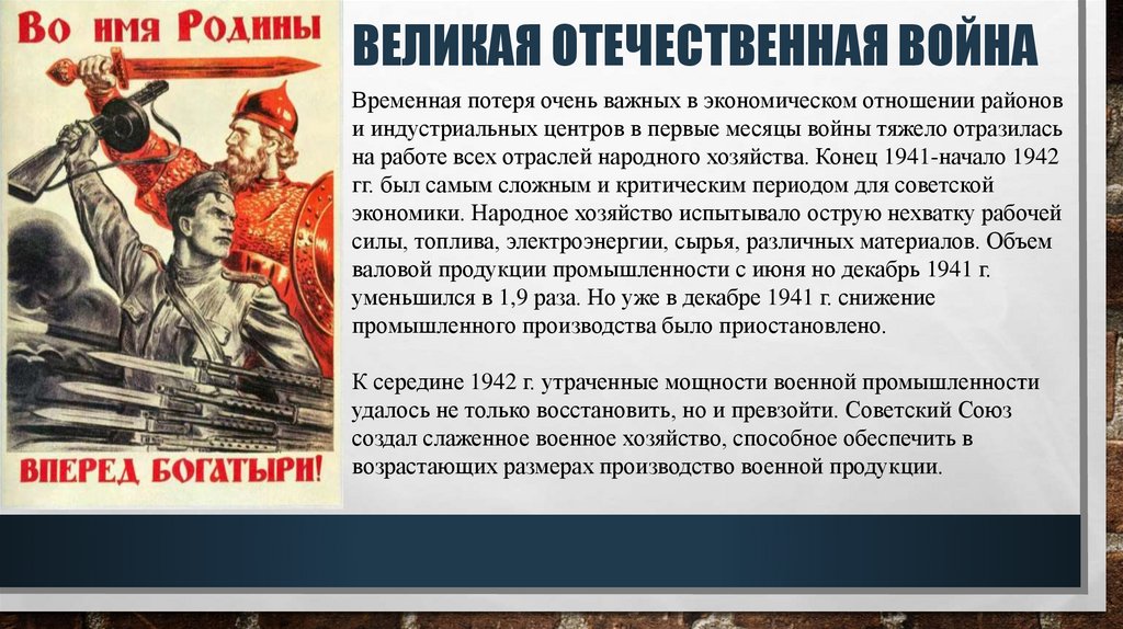 ВЕЛИКАЯ ОТЕЧЕСТВЕННАЯ ВОЙНАВременная потеря очень важных в экономическом отношении районов