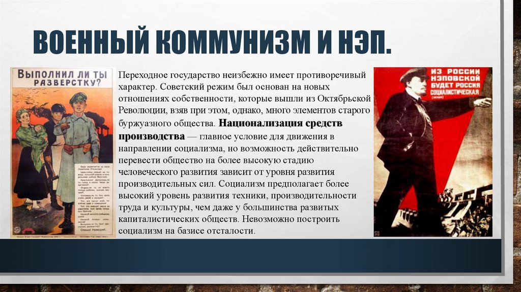 ВОЕННЫЙ КОММУНИЗМ И НЭП.Переходное государство неизбежно имеет противоречивый