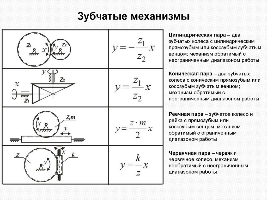и толкатель; механизм с необратимым