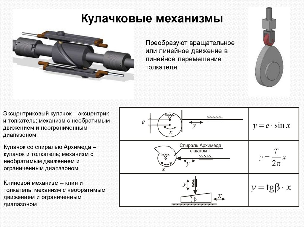Кулачковые механизмыПреобразуют вращательное