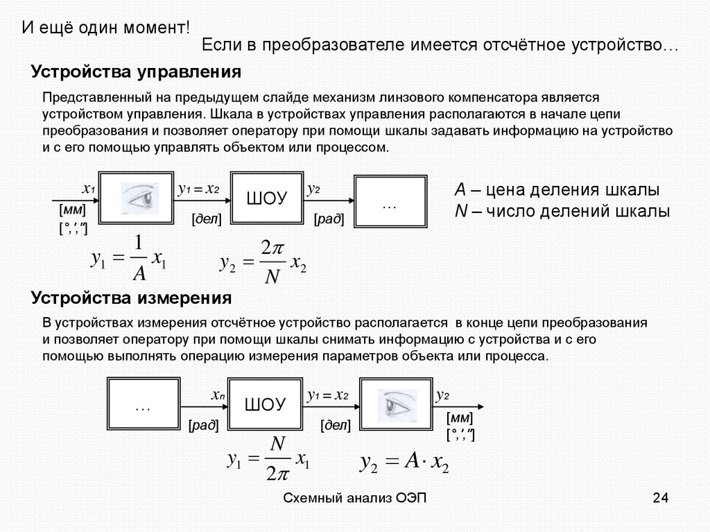 В устройствах измерения отсчётное устройство располагается в конце цепи преобразования