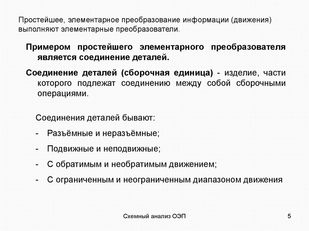 Простейшее, элементарное преобразование информации (движения)выполняют элементарные преобразователи.