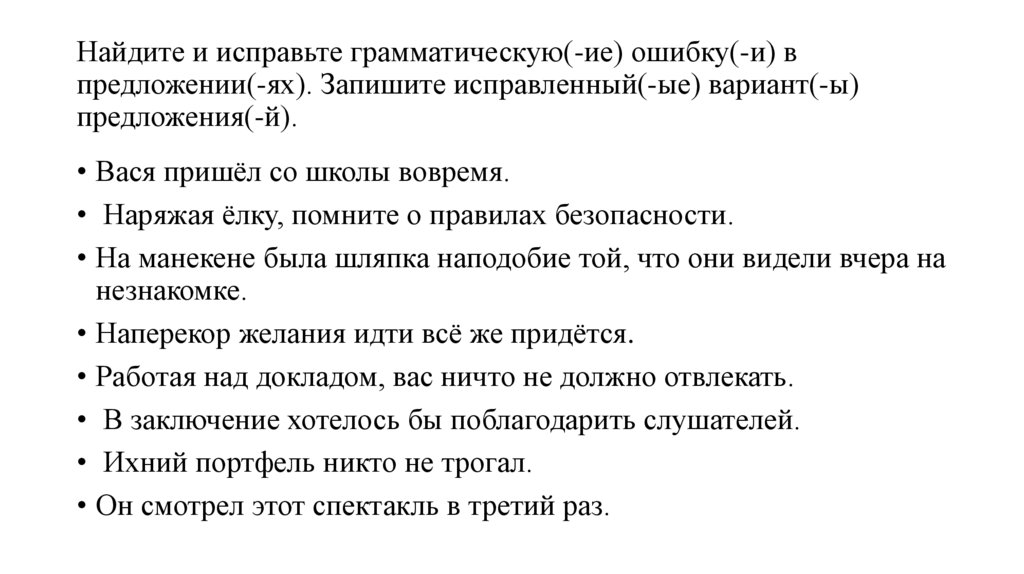 Найдите и исправьте грамматическую(-ие) ошибку(-и) впредложении(-ях). Запишите исправленный(-ые) вариант(-ы)