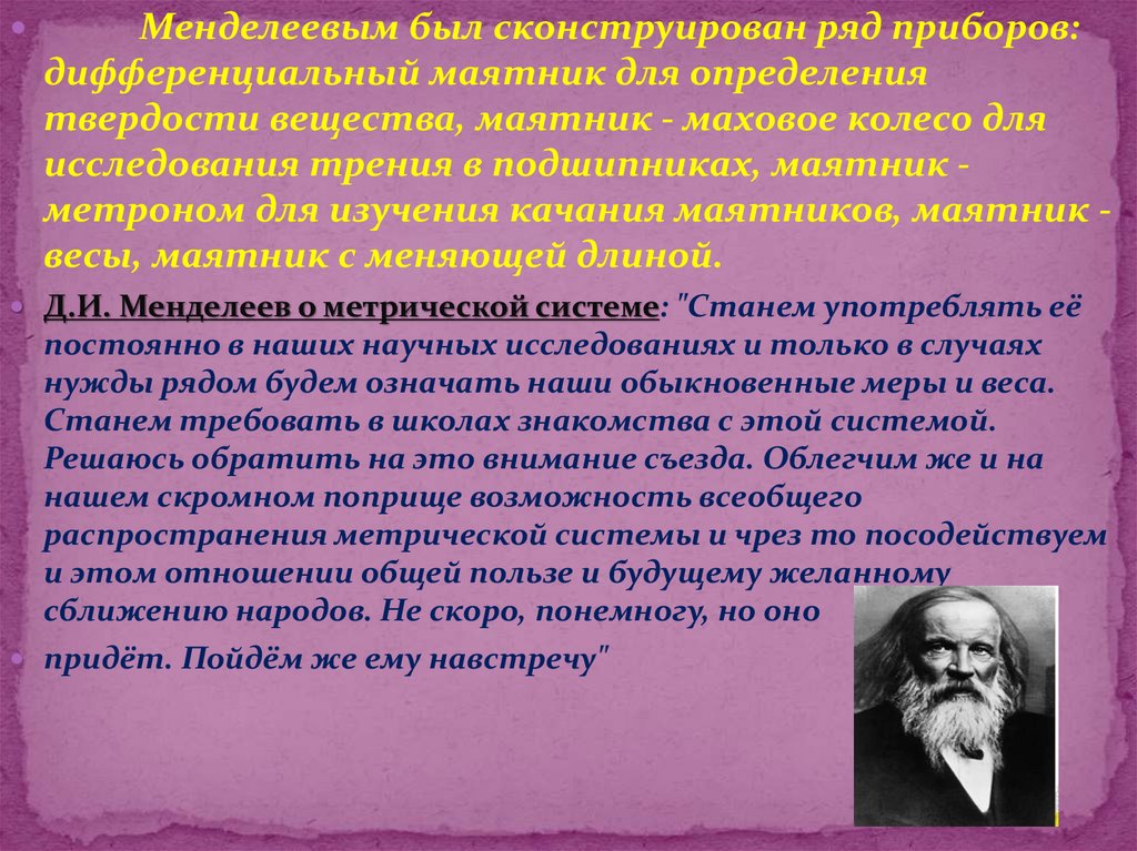 Д.И. Менделеев о метрической системе: "Станем употреблять её