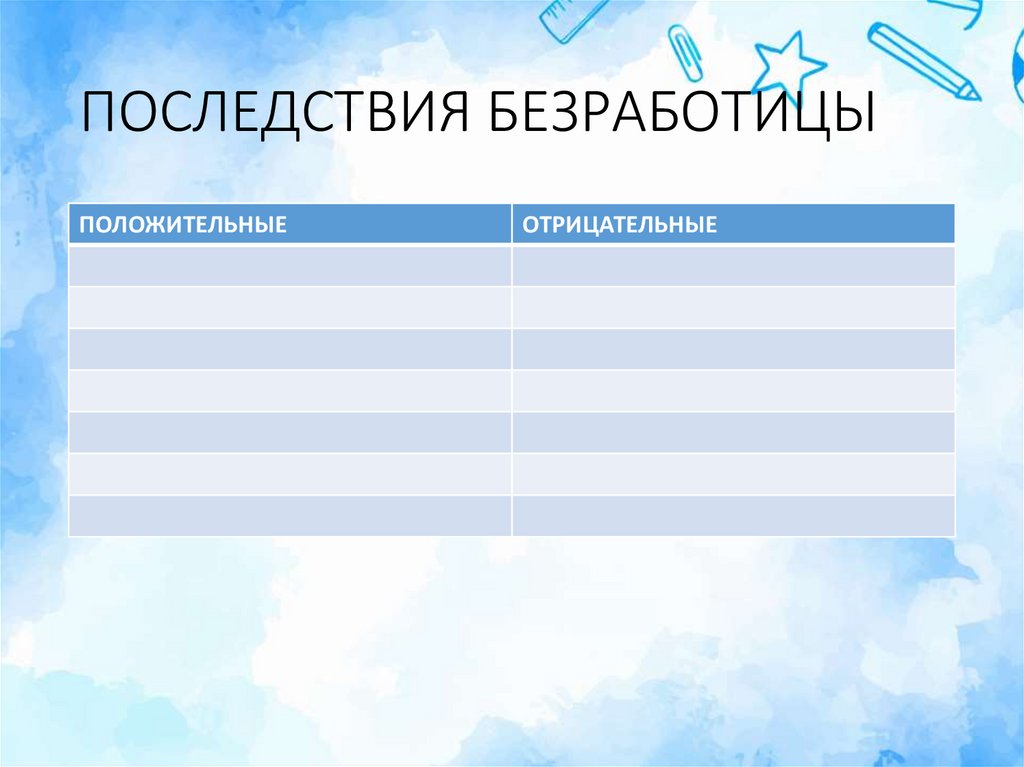 ПОСЛЕДСТВИЯ БЕЗРАБОТИЦЫПОЛОЖИТЕЛЬНЫЕ