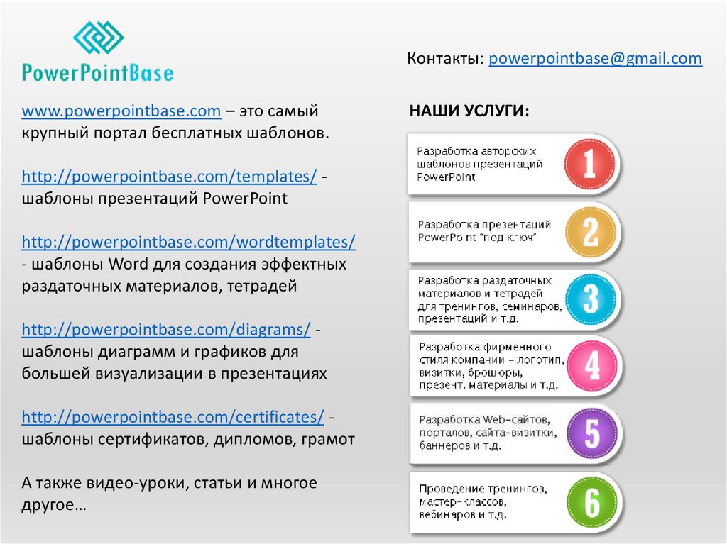 Контакты: powerpointbase@gmail.comwww.powerpointbase.com – это самый