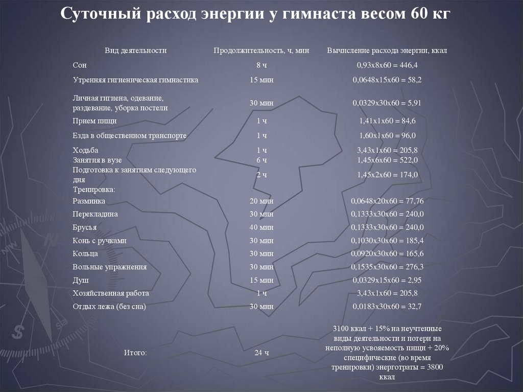 энергозатрат, формирование растущего организма, самочувствие и настроение спортсменов.