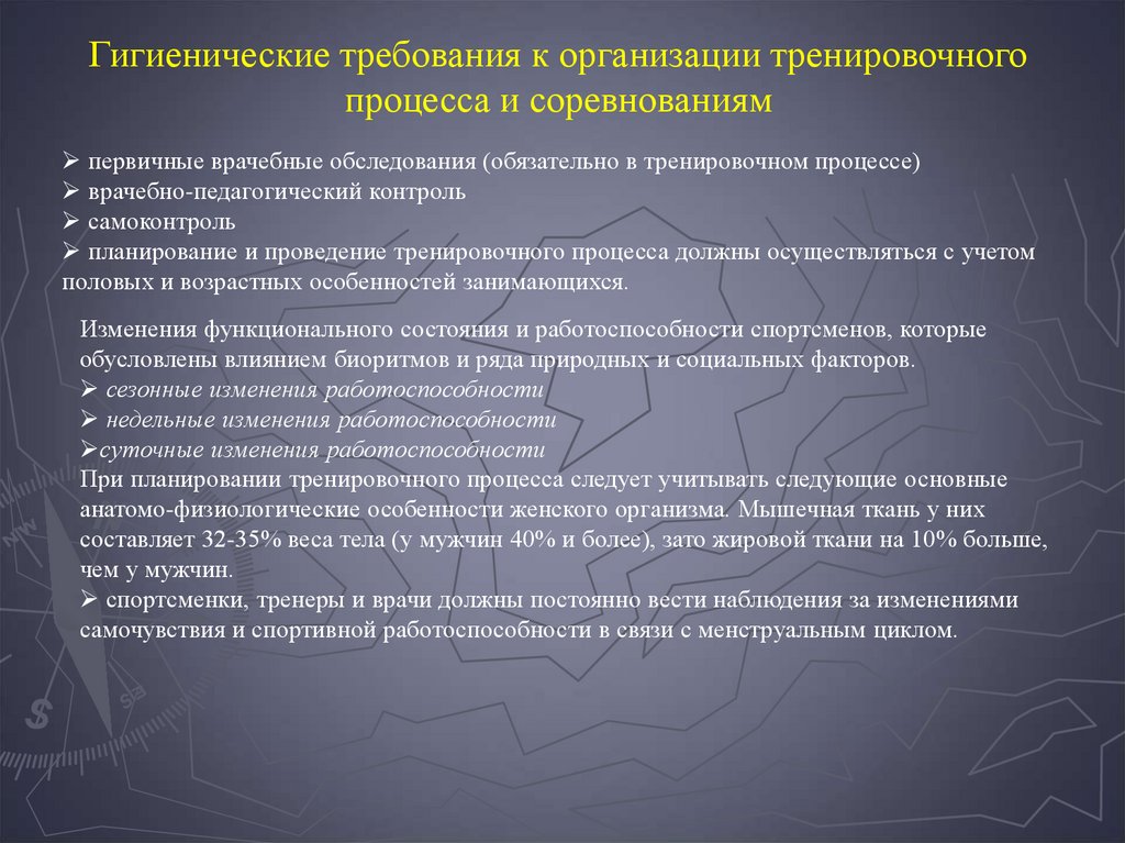 Гигиенические требования к организации тренировочногопроцесса и соревнованиям