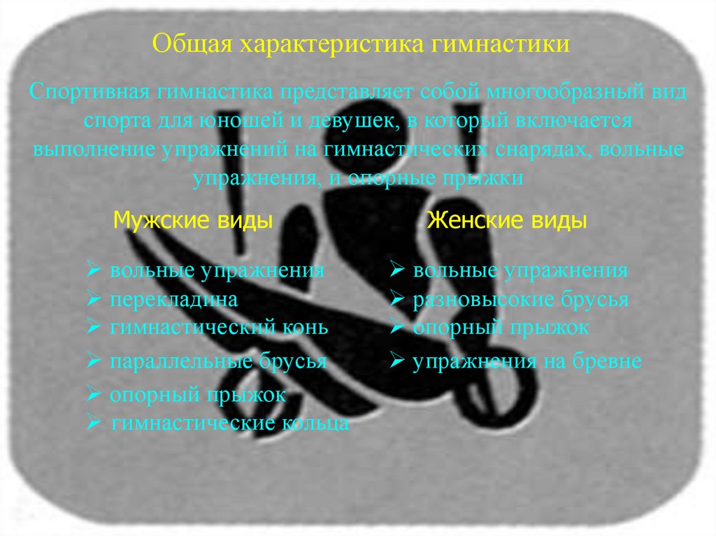 Общая характеристика гимнастикиСпортивная гимнастика представляет собой многообразный вид