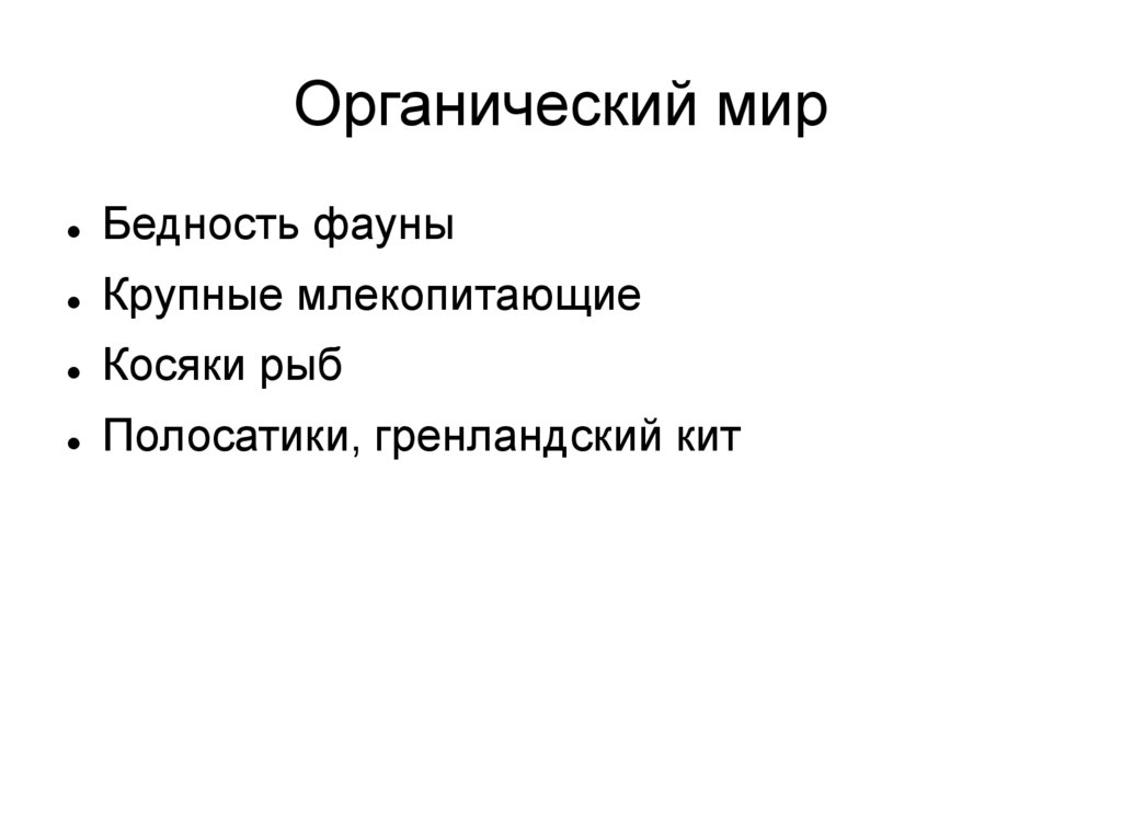 Органический мирБедность фауны