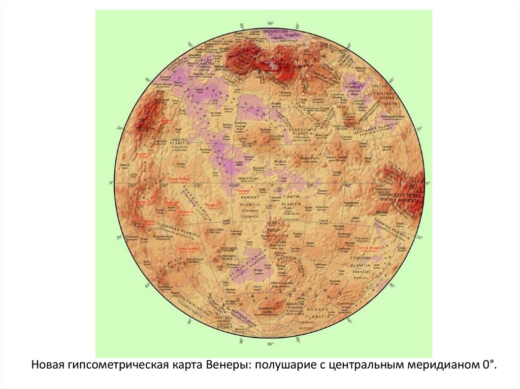 Новая гипсометрическая карта Венеры: полушарие с центральным меридианом 0°.12.