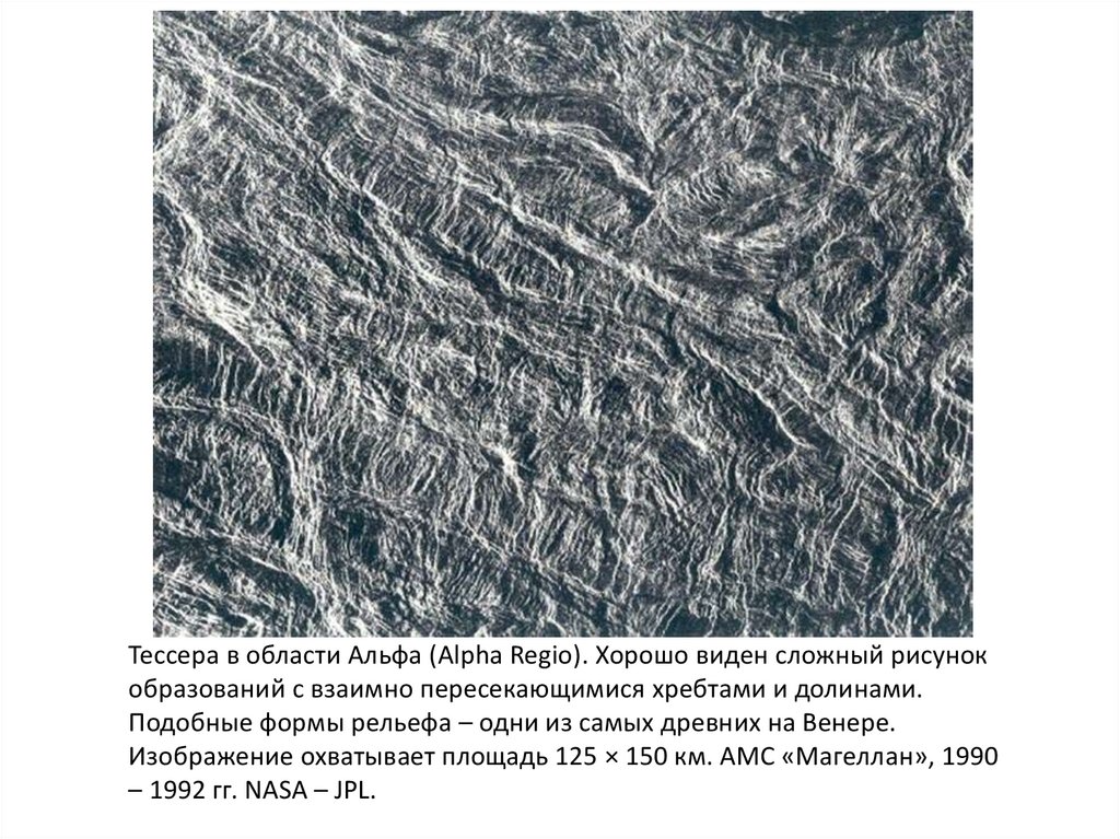 Изображение охватывает площадь 125 × 150 км. АМС «Магеллан», 1990