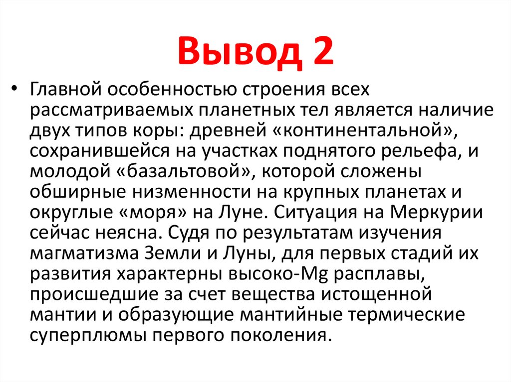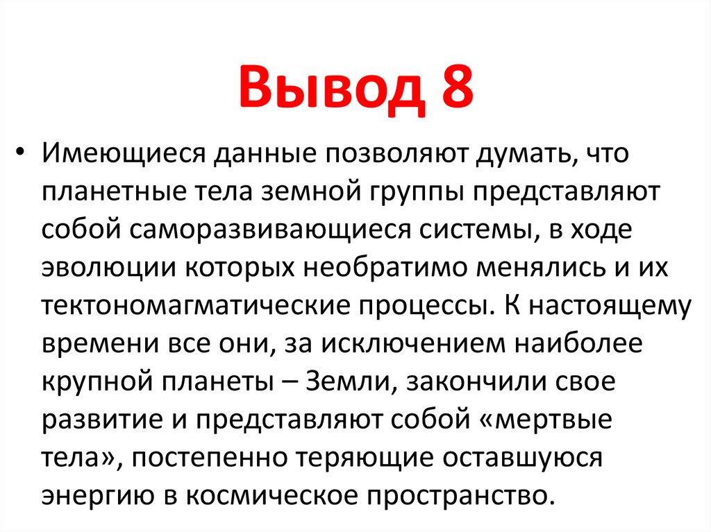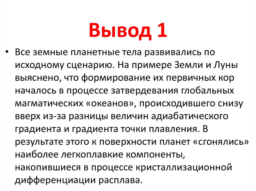 Вывод 1• Все земные планетные тела развивались по