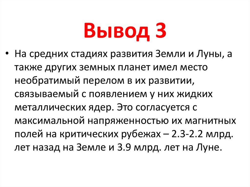 Вывод 3• На средних стадиях развития Земли и Луны, а