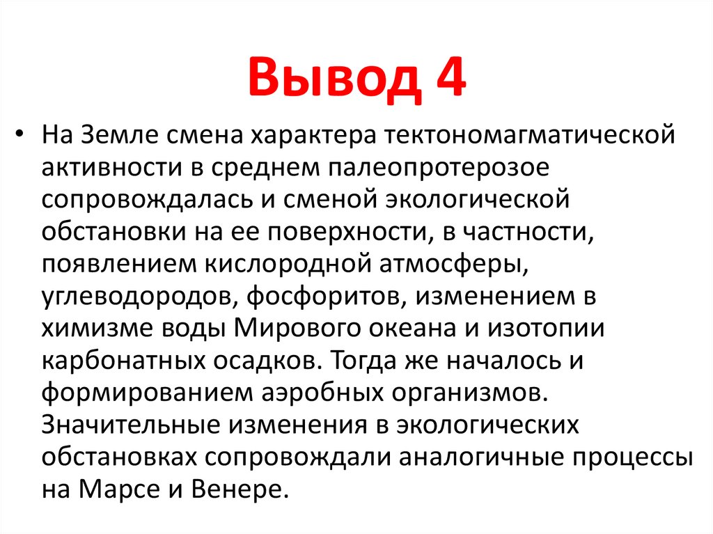 Вывод 4• На Земле смена характера тектономагматической