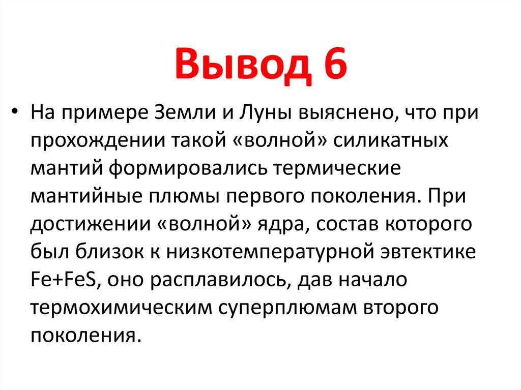Вывод 6• На примере Земли и Луны выяснено, что при
