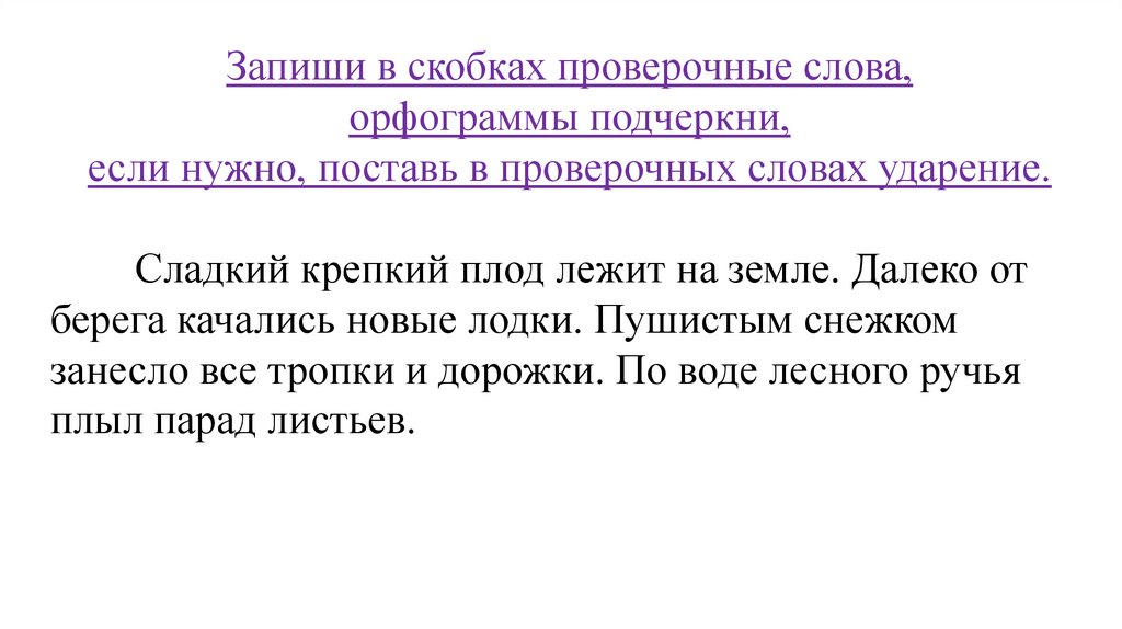 Запиши в скобках проверочные слова,орфограммы подчеркни,