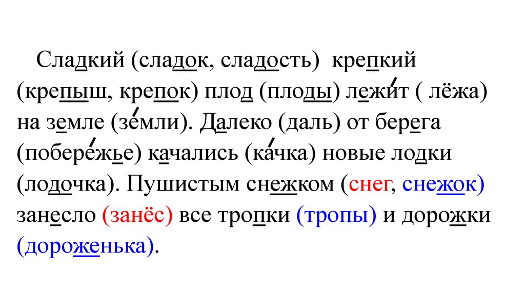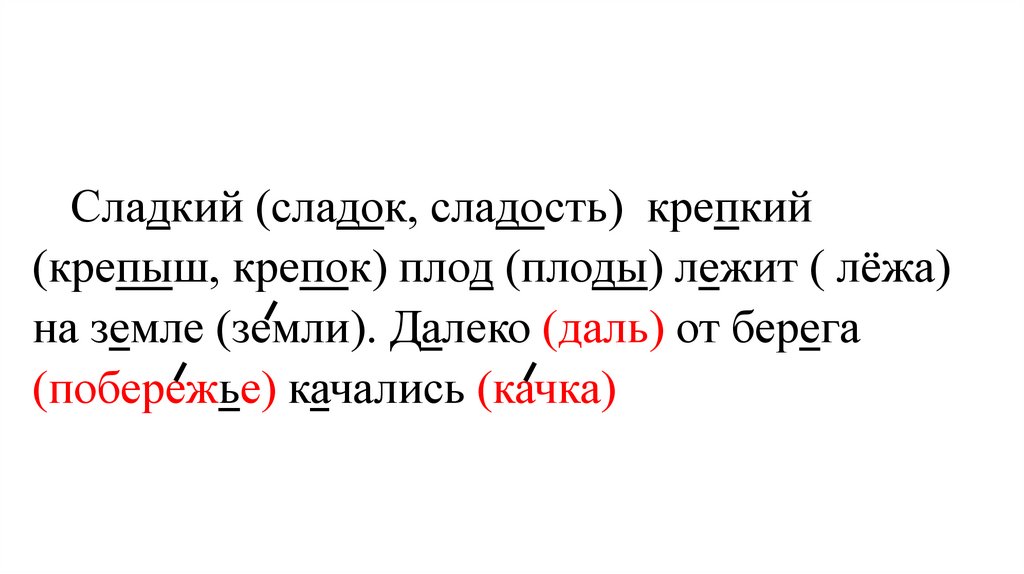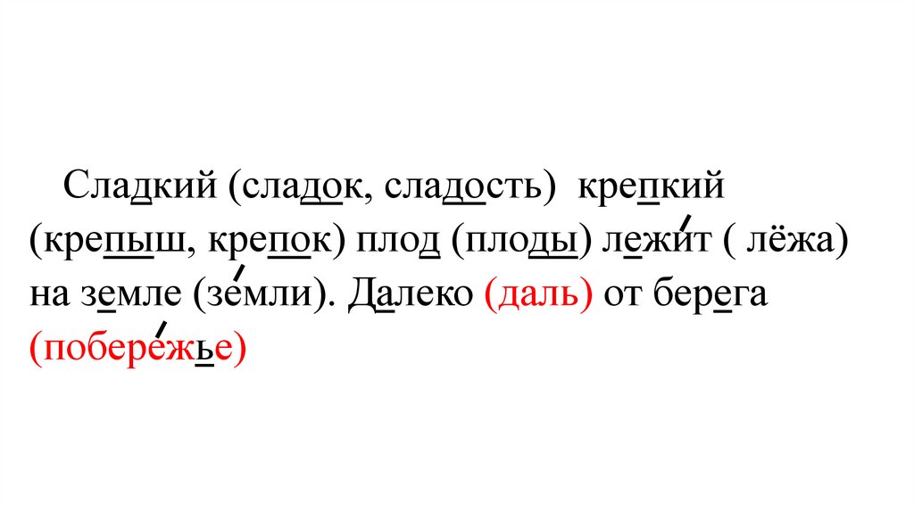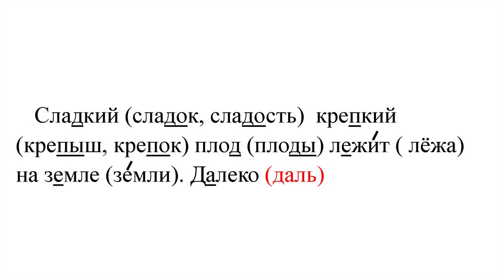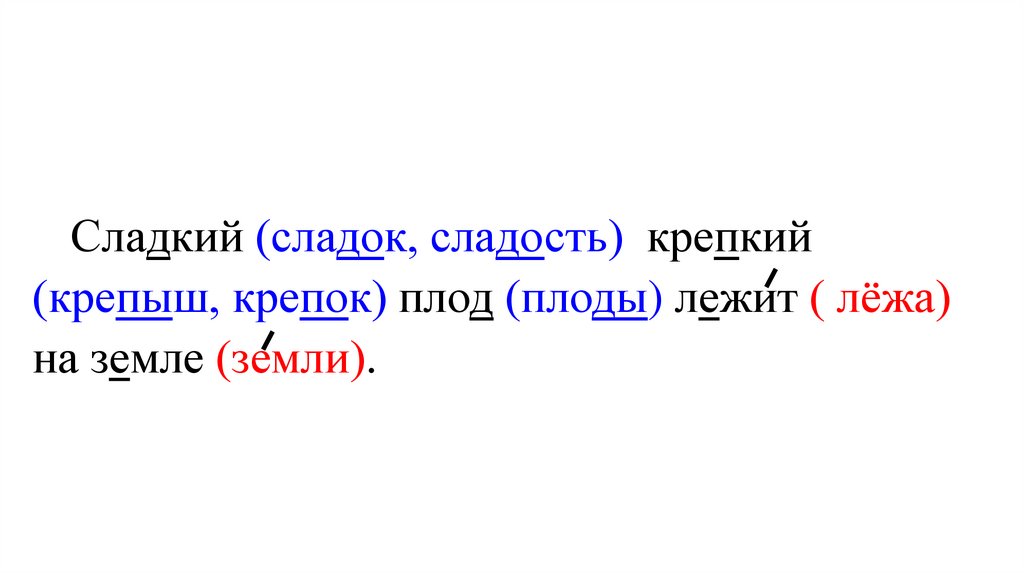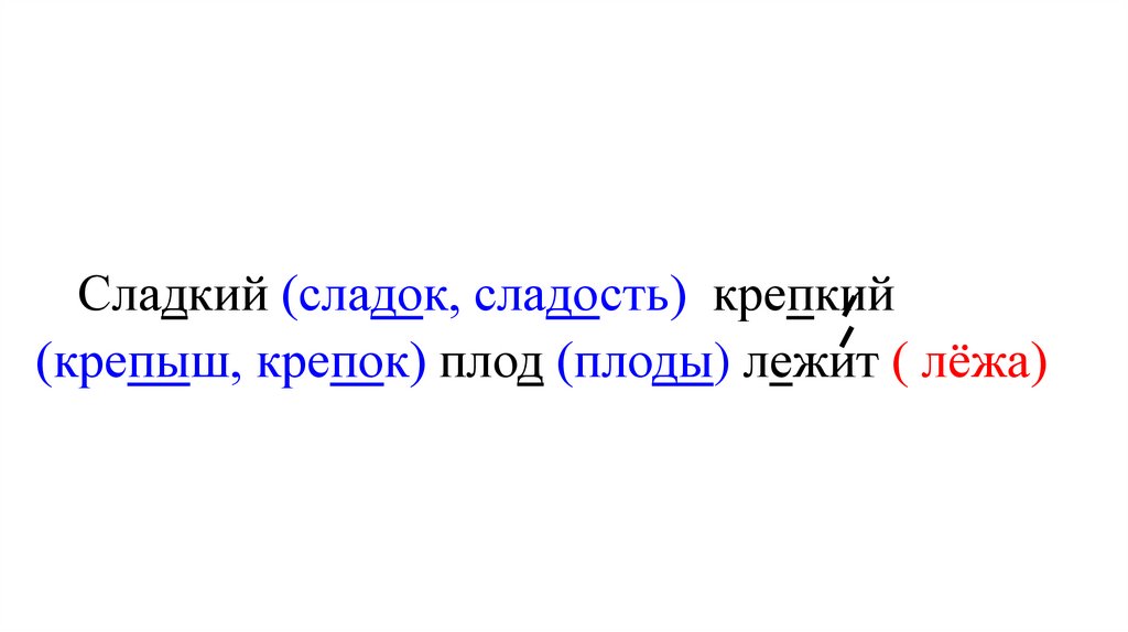 Сладкий (сладок, сладость) крепкий(крепыш, крепок) плод (плоды) лежит ( лёжа)