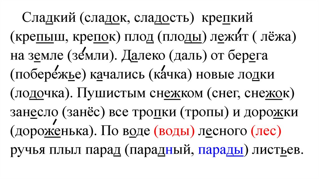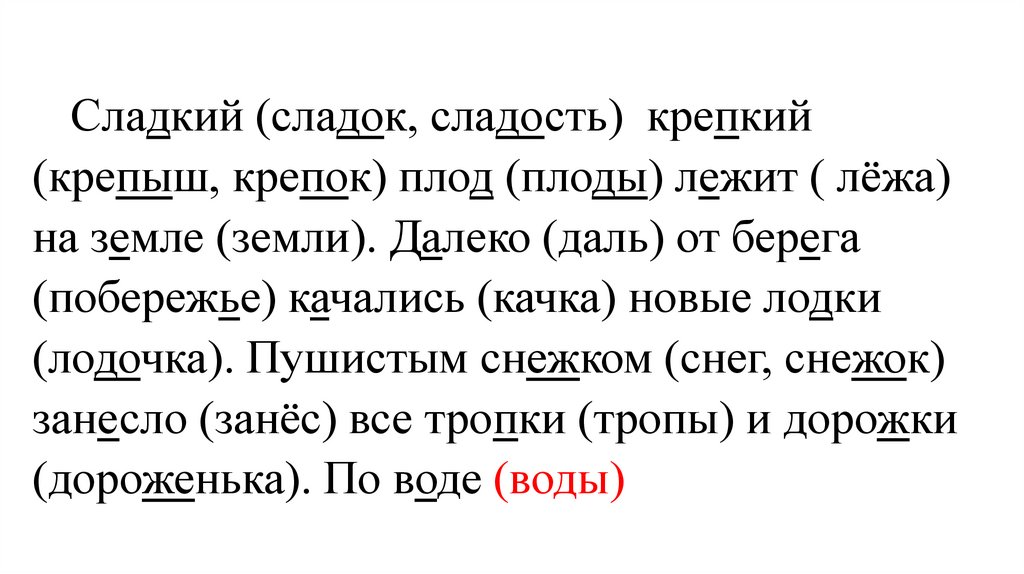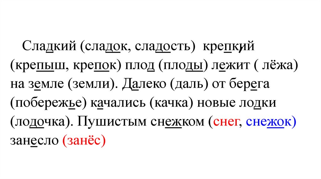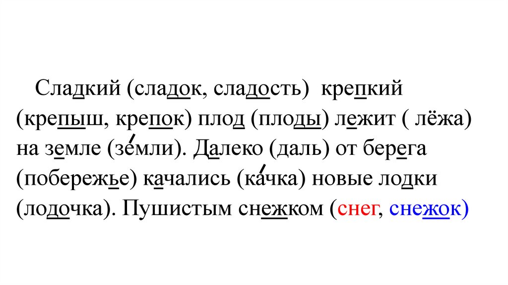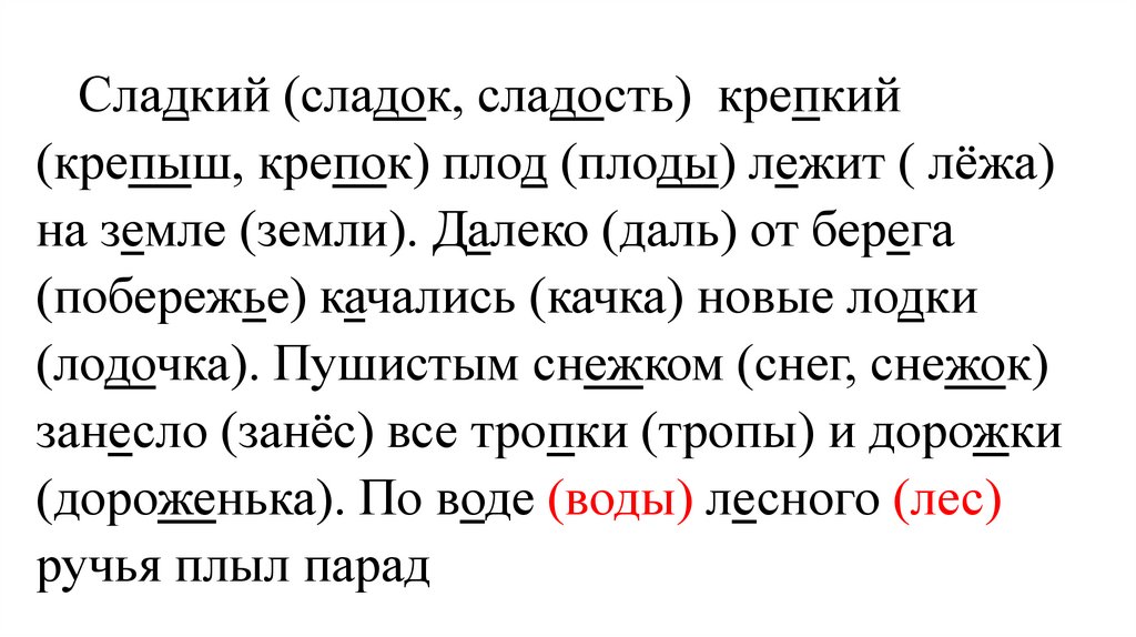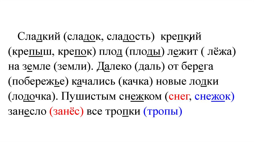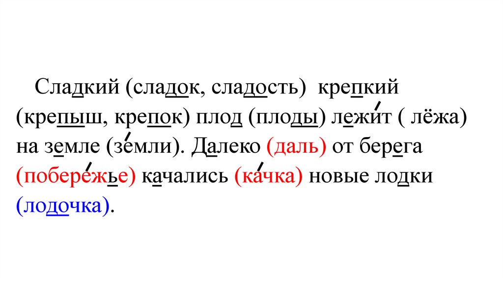 Сладкий (сладок, сладость) крепкий(крепыш, крепок) плод (плоды) лежит ( лёжа)